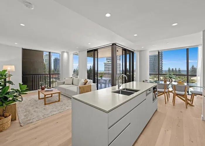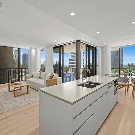 Les logements Walk To Beach, Pacific Fair & Dining comprend une cuisine entièrement équipée et offre une vue sur la mer.